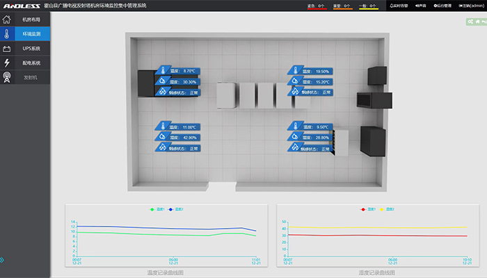 安徽省某電視局發射台近(jìn)期向我司(sī)采購安裝(zhuāng)一(yī)套動力環境監控係統,主要對其機房環境、UPS係統、配電係統等設備(bèi)進(jìn)行提前預警和監測。