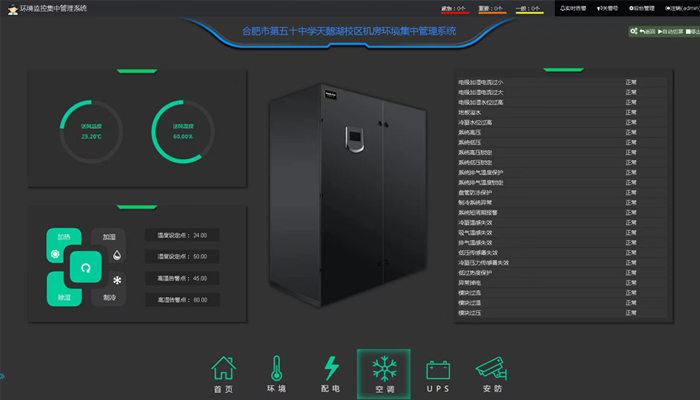 2、異常警報:溫度和濕度異常、漏水、停電等情況。機(jī)房運(yùn)行過程中,係統會自動報警(jǐng)並及時通知(zhī)管理人員,避免更大的損失。