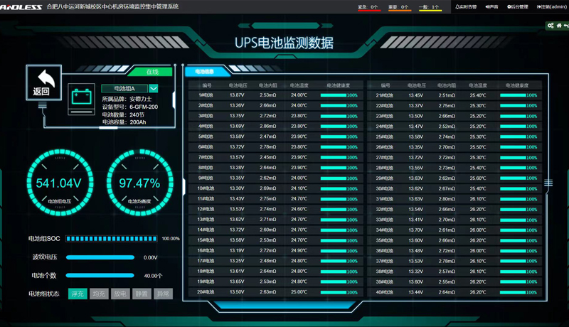 近期我司為合肥八中運河新城校區機房提供並安裝一套雙排微模塊係統及200AH安德力士鉛酸蓄電池240節為UPS提供供電保障,機房動環係統現已調(diào)試完成。