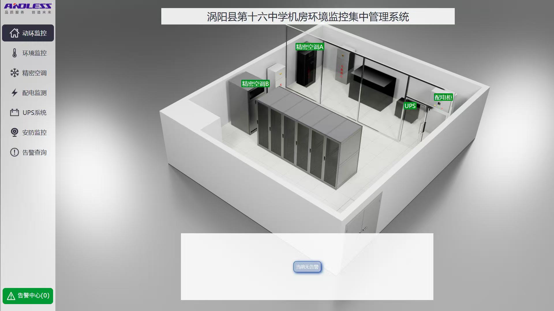 近期我司有幸為本項目供貨安裝了一套UPS不間斷電源(yuán)係統,包含:20KVA、40KVA高頻UPS主機各1台,製冷量(liàng)12.5KW、20.5KW精密空調各(gè)1台,12V 100AH蓄電池共96節,配套電池櫃3套,服務(wù)器機櫃6台,以及(jí)配套動環監控設備。所有設備現已供貨安裝完成,開機調試成功。