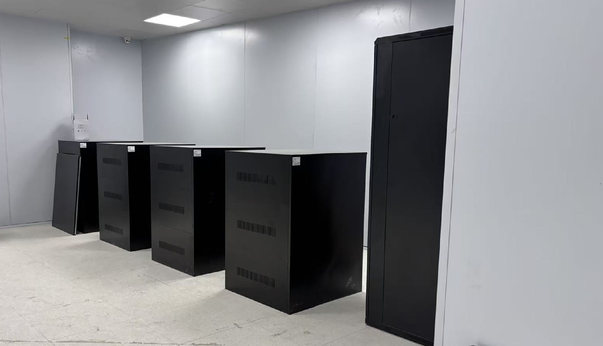 近期我司有幸為本項目設計了一套雙排冷通道係(xì)統,包含:精密配(pèi)電櫃1台、機櫃16台、製冷量25KW的列間空(kōng)調2台、150KVA模塊機1台(內含3個25KVA功率模塊)、12V100AH蓄電池(chí)128節、電池櫃4套、配套動環監控設備(bèi),以及配套通道(dào)組件等。另外還設計了一套UPS不間斷電源係(xì)統,包含:60KVA主機(jī)1台、12V100AH蓄電池96節、3套電池櫃(guì)。所有設備現已供貨安裝完成,調試成功。