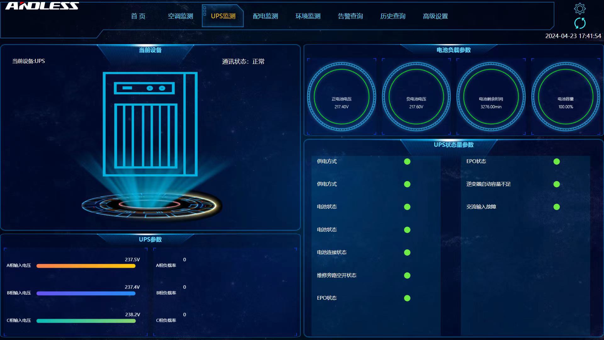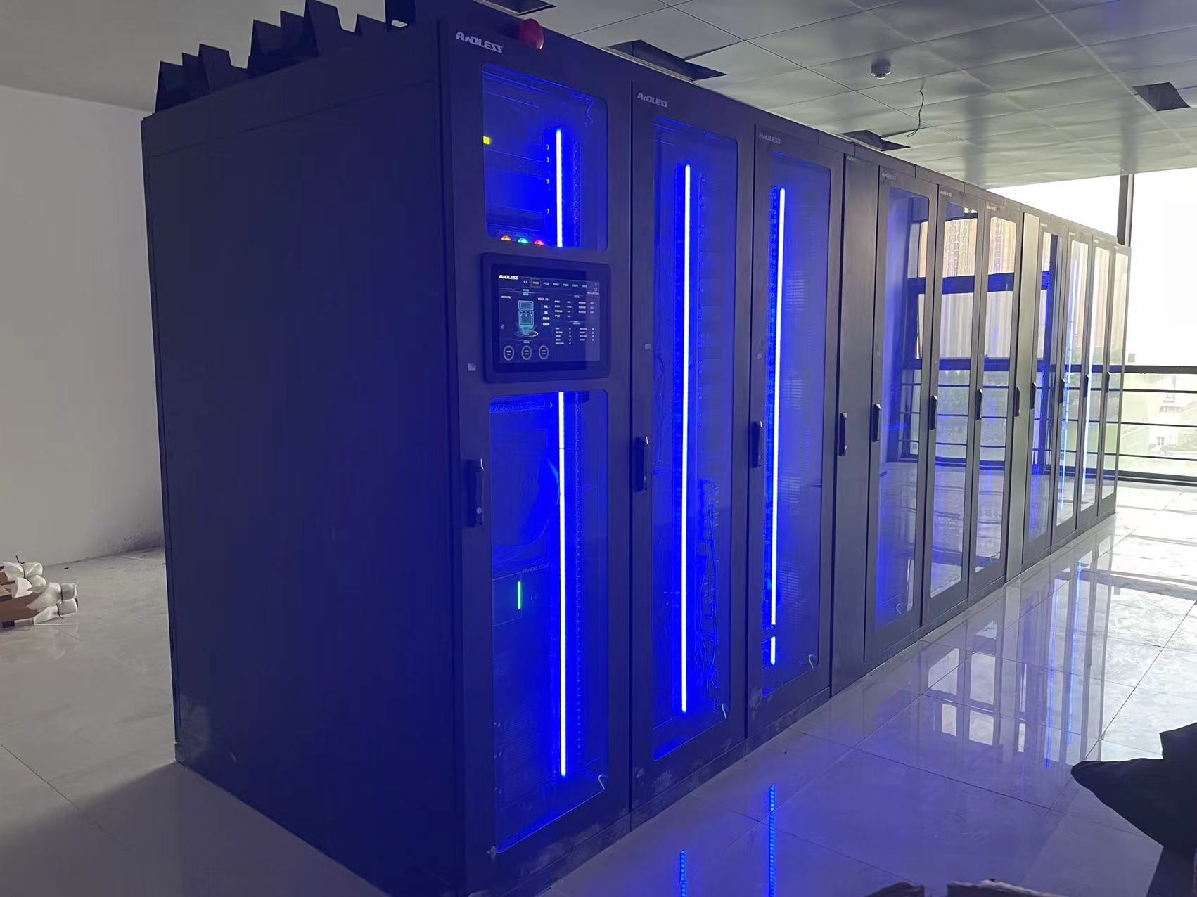 化(huà)工工程合肥設計中心用房項(xiàng)目信息化建設采用微模塊機房建設,為保證係統的穩定供電,避免停電等突發事件對業務的(de)影響,引入(rù)UPS不間斷(duàn)電源(yuán)係統是至關重要(yào)的。信息機房采用安德力士GLV單排微模(mó)塊係統1套,係(xì)統使用行間空(kōng)調2台。單排微模塊機櫃的製冷模塊,采用(yòng)靠近熱源的列間空調,和標準機櫃一體化設計。櫃體采用全封閉設(shè)計,冷熱通道(dào)分離;空調采用後(hòu)進風,前出風90°左回風的方式,送風(fēng)距離短、循環風阻小,大大(dà)提高製冷效率,實現高密度製冷。