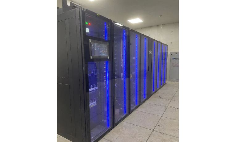 江蘇省鹽城天森機器人項目信息化建設采用微模塊機房建設,為(wéi)保證係統的(de)穩(wěn)定供電,避免停電等突發事件對業務的(de)影(yǐng)響,引入UPS不間斷電源係統是至關重要的。單排微模(mó)塊機櫃的製冷模(mó)塊,采用靠近熱源的列間空調(diào),和標準機櫃(guì)一體化設計。櫃體采用(yòng)全封閉設(shè)計,冷熱通道分離;空調采用後進風,前出風90°左(zuǒ)回風的方式,送風距離短、循環(huán)風阻小,大大提高製冷效率,實現高(gāo)密度製冷。